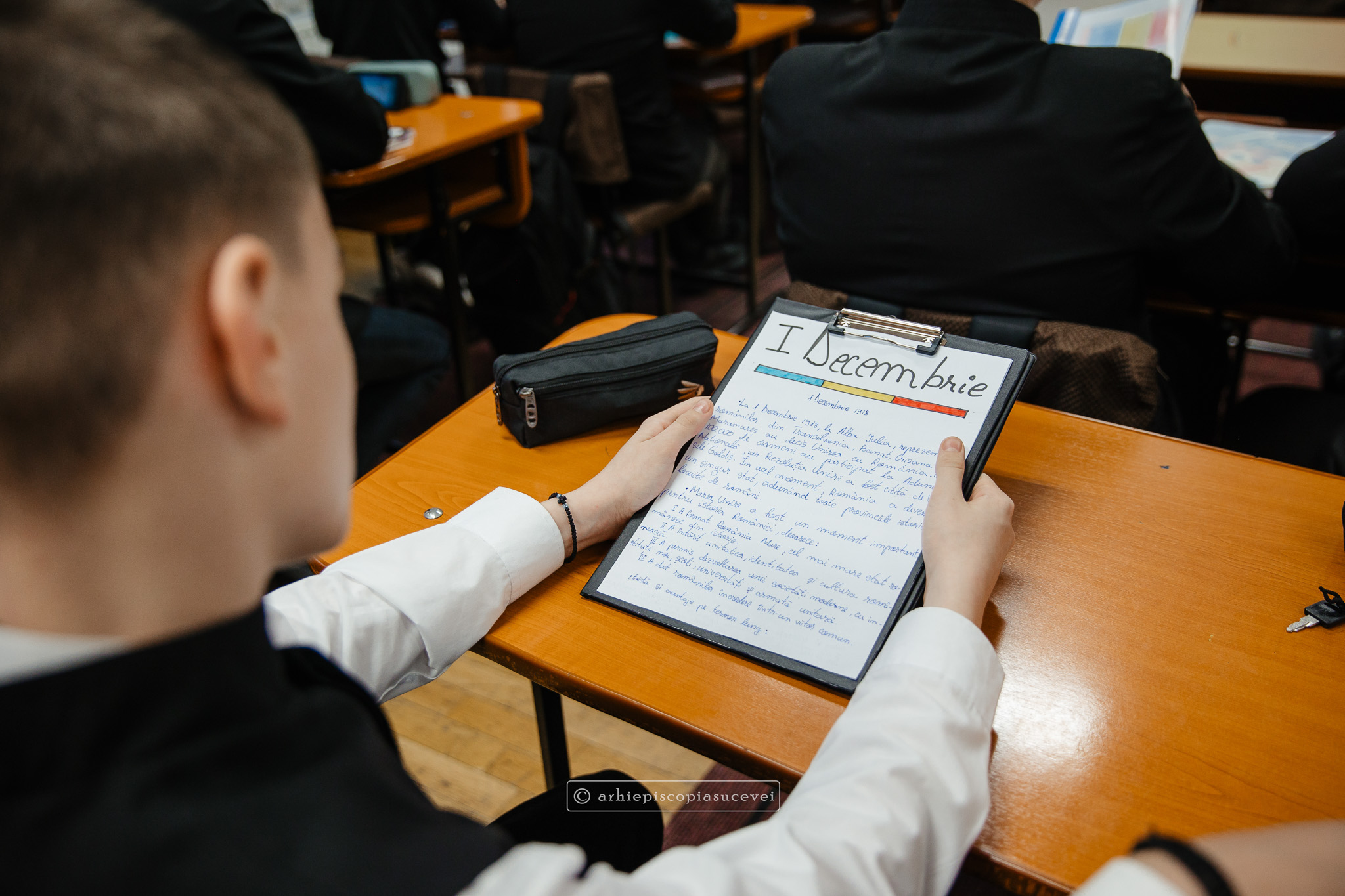 Cu ocazia Zilei Naționale a României, într-o atmosferă încărcată de emoție și respect față de trecut, elevii din clasele a VIII-a, a IX-a și a X-a ai Liceului Teologic „Mitropolitul Dosoftei” Suceava, îndrumați cu grijă și dăruire de doamna profesor Daria Grivincă Vrăjitoru, au desfășurat o activitate aparte, dedicată celebrării zilei de 1 Decembrie — ziua în care sufletul neamului românesc a bătut la unison, într-o singură inimă și într-o singură țară.