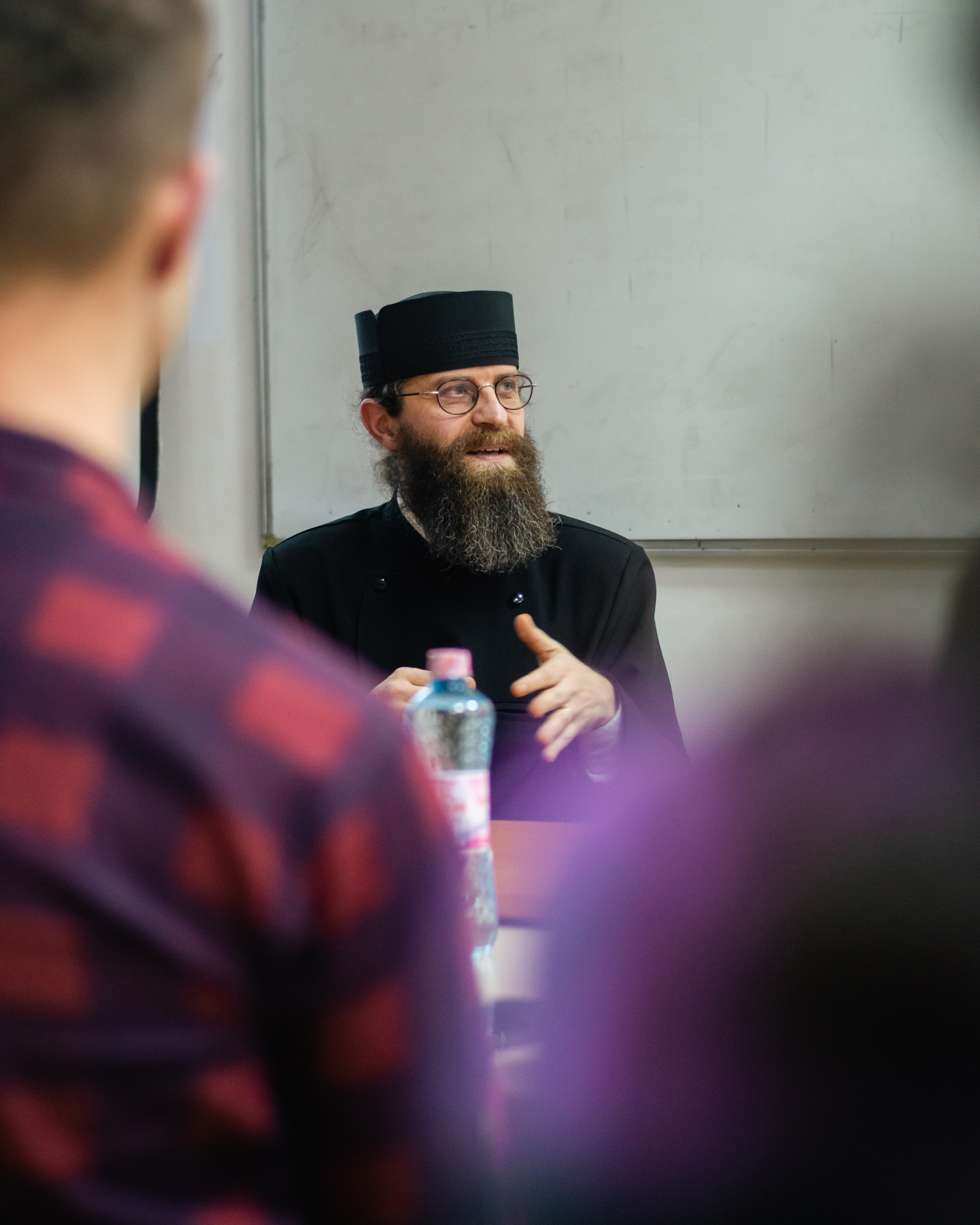În încheierea serii de dialog, părintele profesor ne-a transmis celor prezenți un gând la care să medităm. Acest îndemn, pe care prima dată l-a rostit Sfântul Serafim de Sarov, ne responsabilizează mai mult acum, în perioada Sfintelor Sărbători, când fiecare dintre noi trebuie să fim aproapelui lumină, nădejde și pace. „Dobândeşte pacea si mii de oameni din jurul tău se vor mântui!