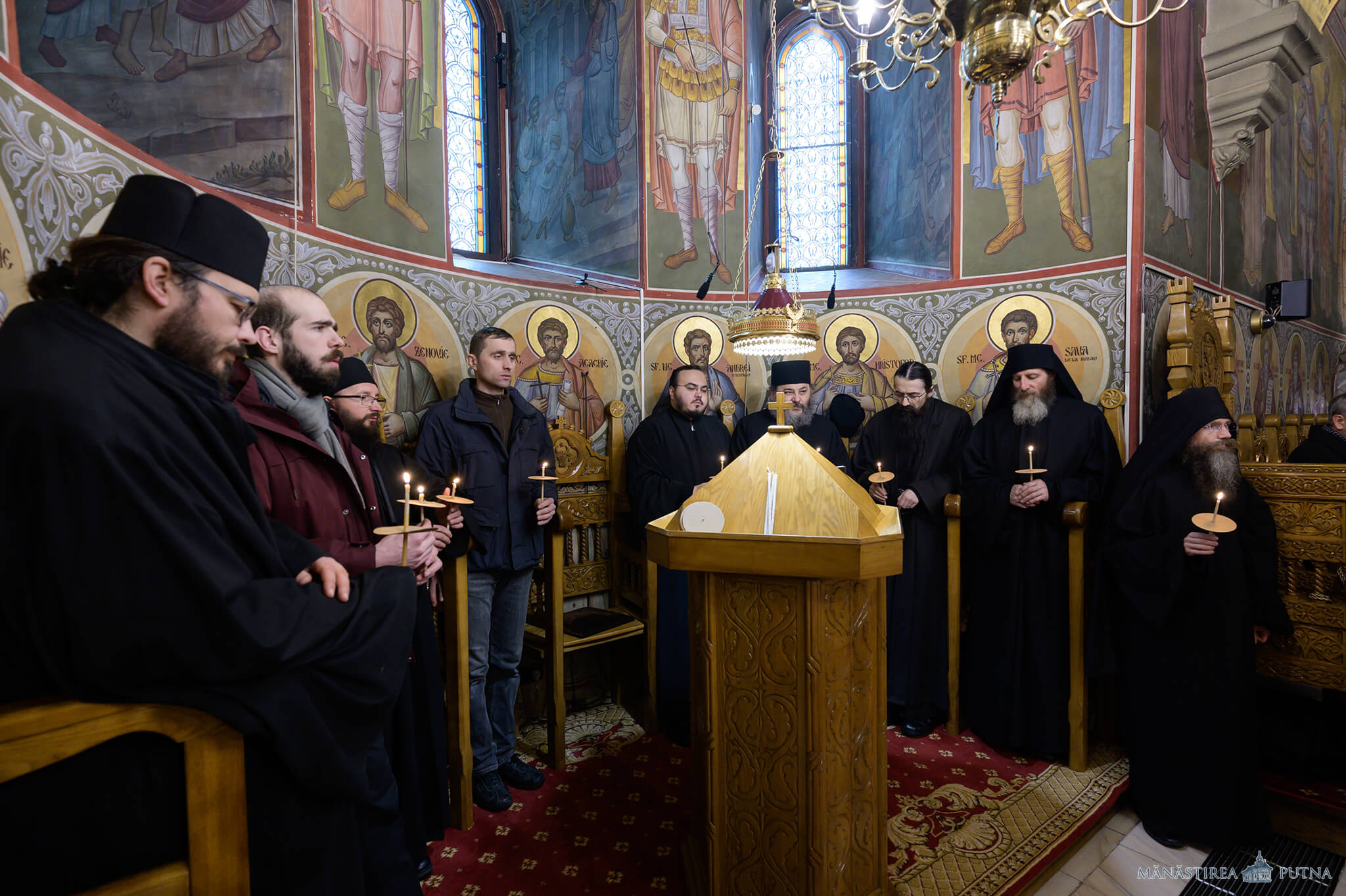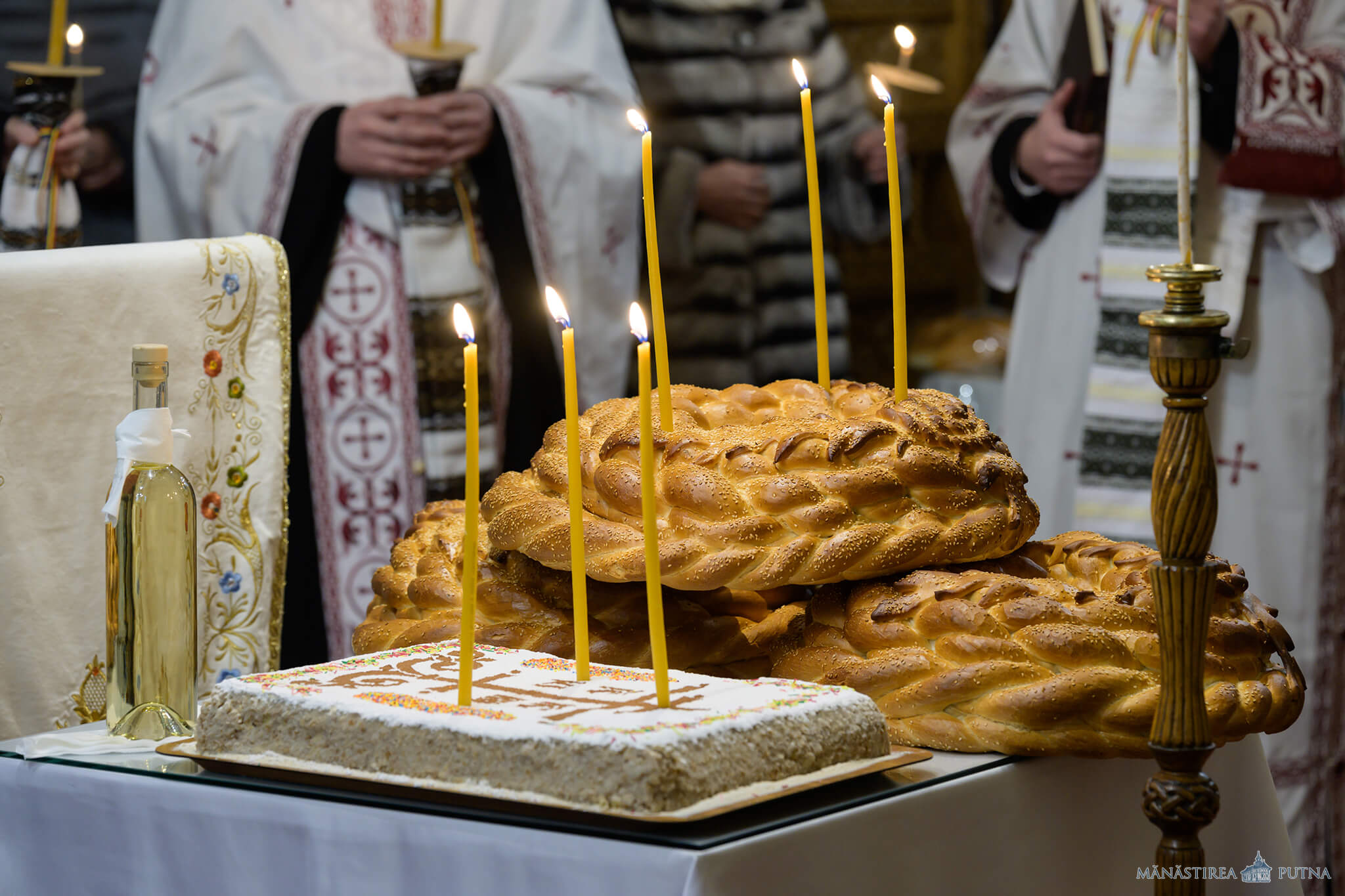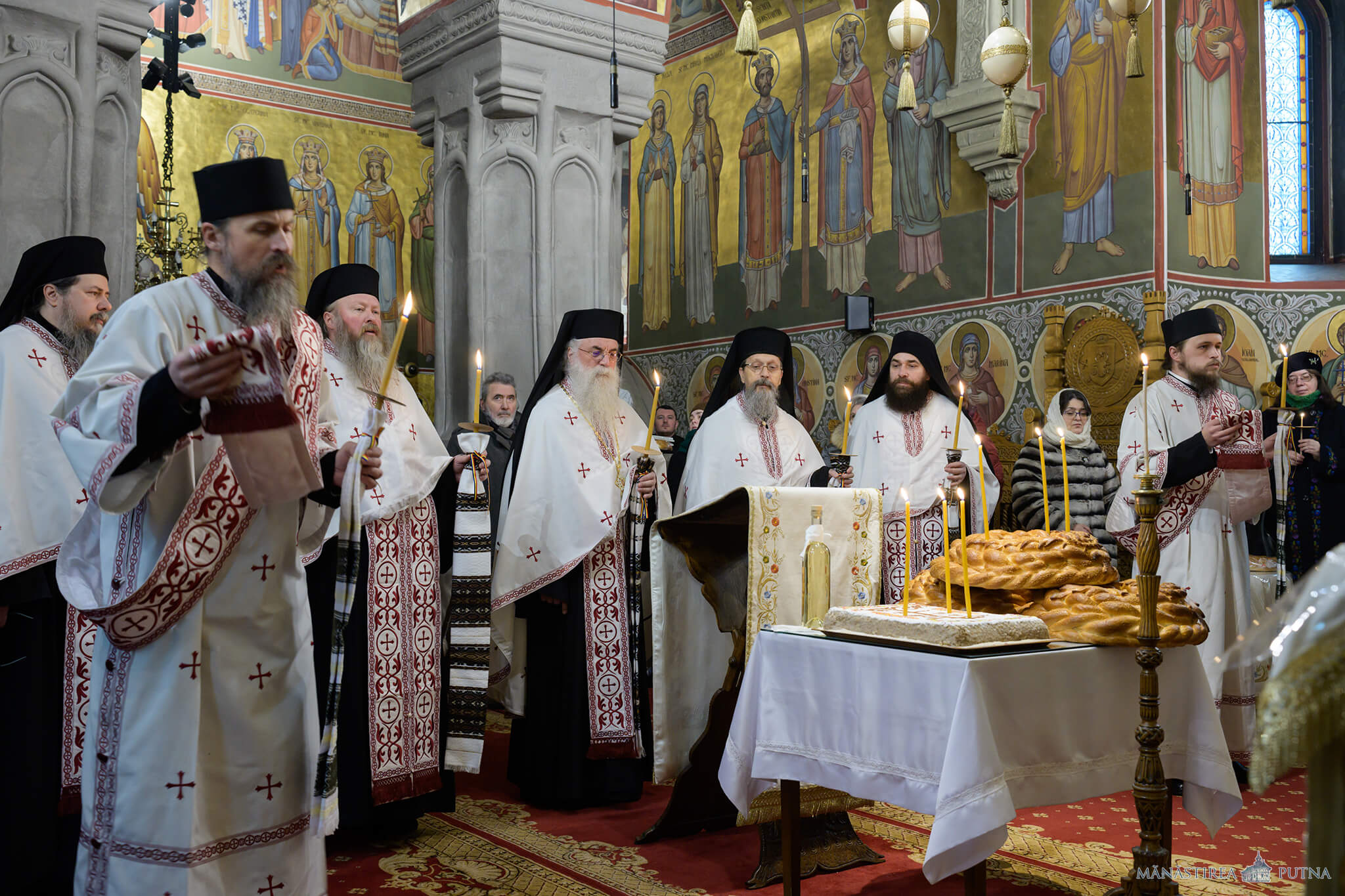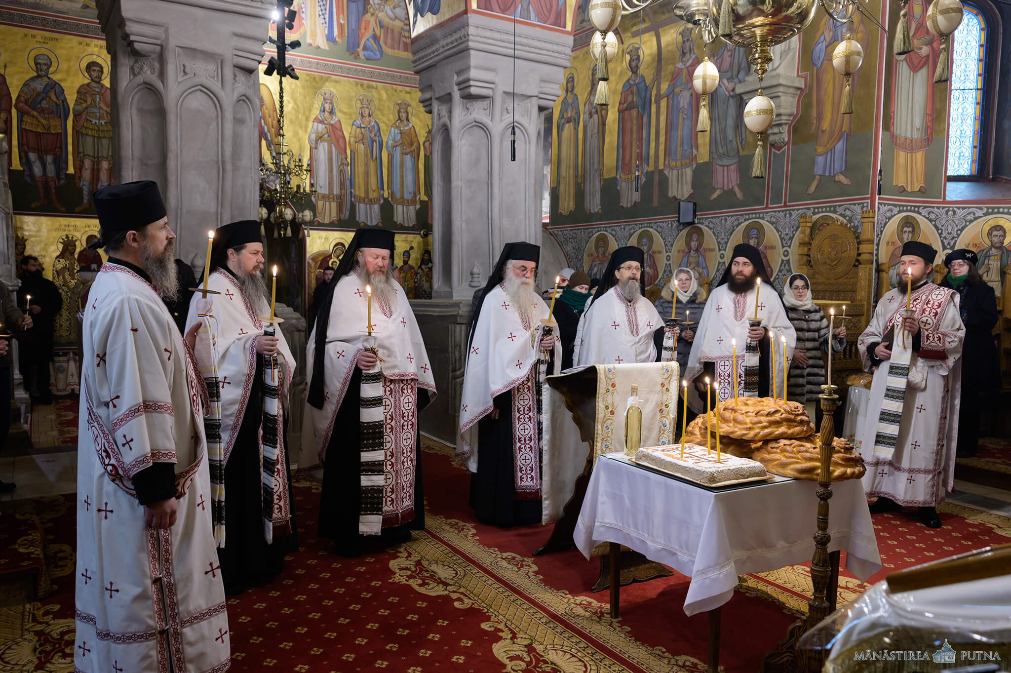 La ora 11:30, părintele stareț al mănăstirii, arhim. Melchisedec Velnic, și clerici din obște au săvârșit slujba Parastasului pentru Mihai Eminescu și părinții și rudele sale. La sfârșit, părintele stareț a rostit un cuvânt despre mesajul lui Eminescu în vremea vieții sale și astăzi.